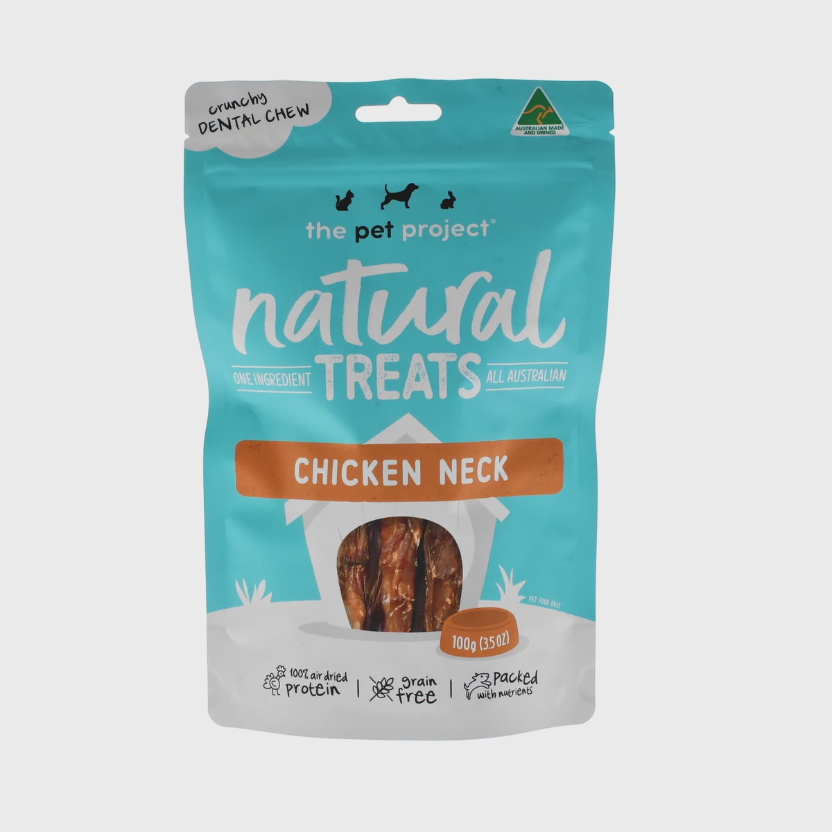 Satisfy your dog's natural instincts with The Pet Project Chicken Neck! This all-natural chew is packed with protein and essential nutrients, offering a delicious and satisfying experience for your furry friend. The combination of meat and cartilage provides a unique texture that helps promote dental health by naturally scraping away plaque and tartar buildup.
