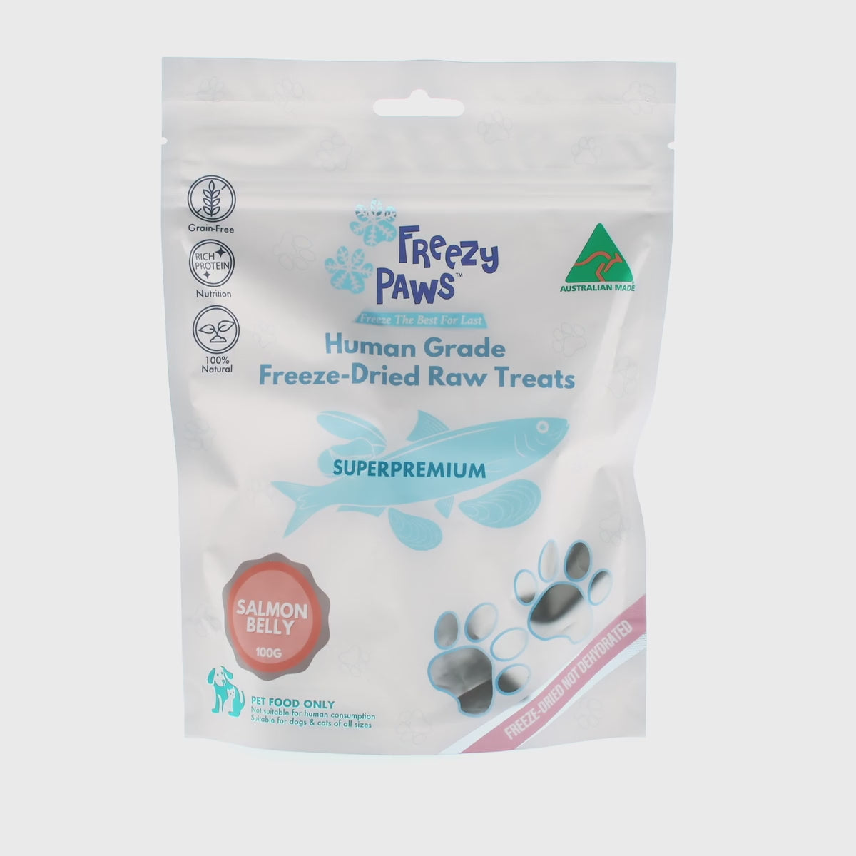 Dive into a sea of flavour with Freezy Paws Freeze-Dried Salmon Bellies Treats!