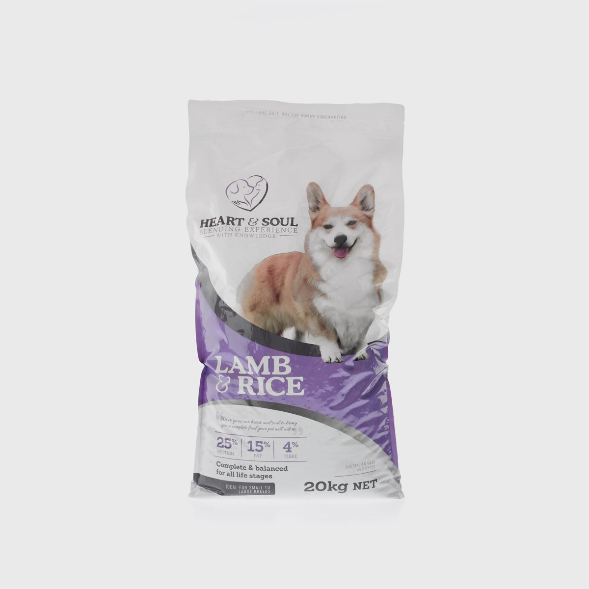 Heart and Soul Lamb & Rice is a premium pet food crafted to support your dog’s health and vitality.