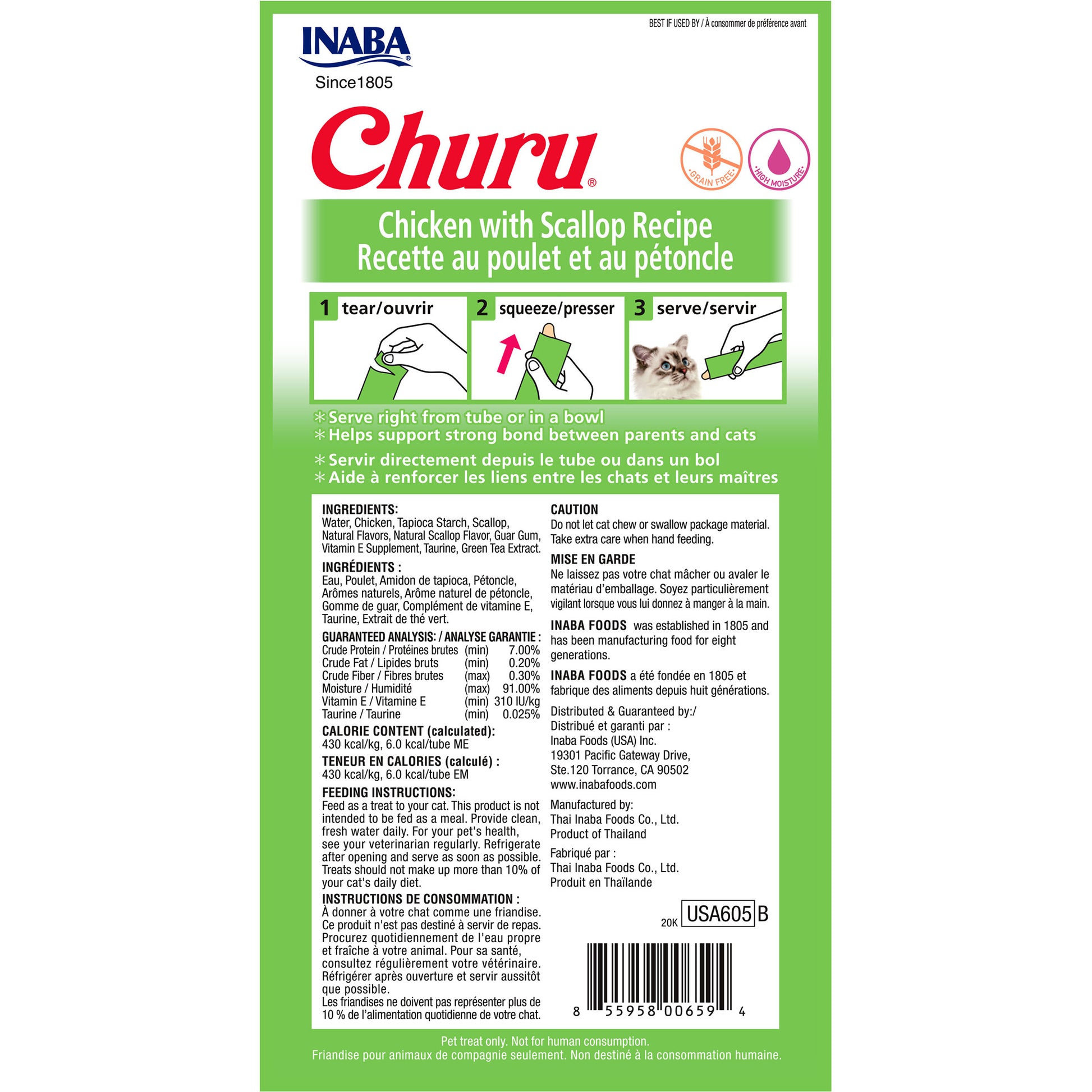 Made with wholesome ingredients you can trust, every INABA product is made with yummy, high-quality ingredients, including farm-raised chicken and/or natural wild-caught tuna.