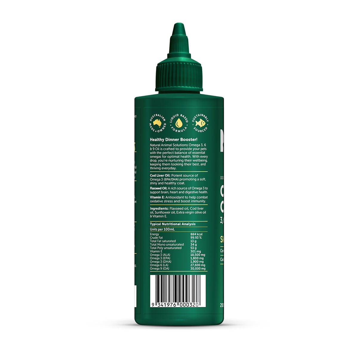 Transform your pet's skin, coat, and overall wellbeing with NAS Omega 3, 6 & 9 Oil, a premium blend of essential fatty acids designed for both dogs and cats.