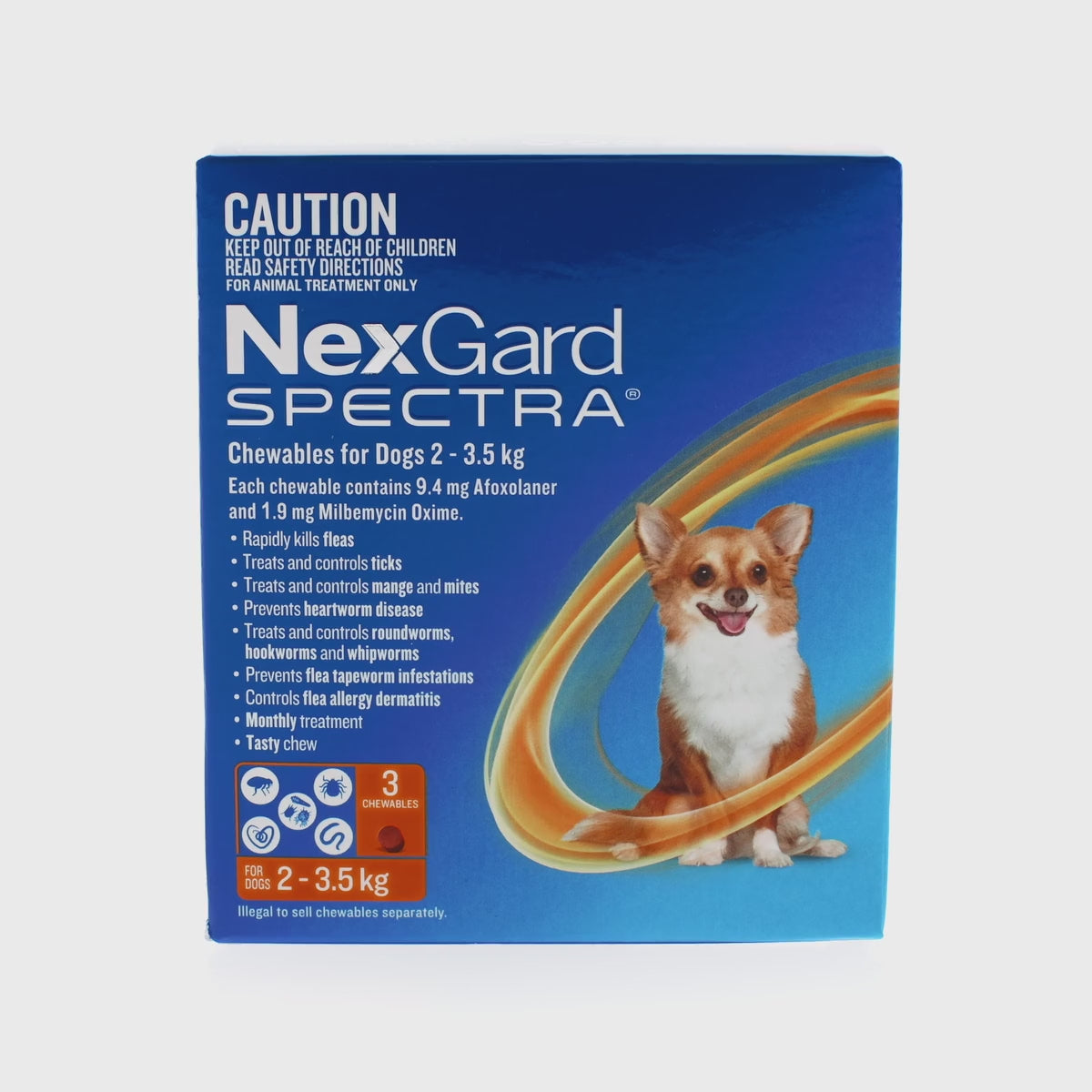 Keep your extra-small pup safe and sound! NexGard Spectra for Extra Small dogs provides all-in-one parasite protection against fleas, ticks, heartworm disease, and a variety of intestinal worms.