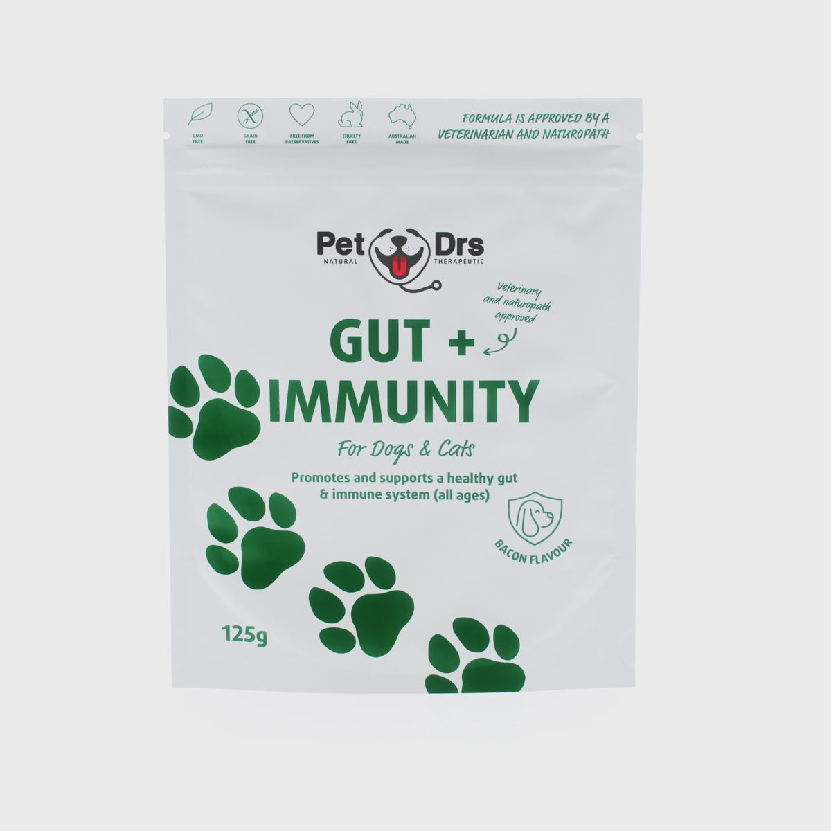 Give your furry companion the gift of optimal health with Pet Drs Gut + Immunity, a comprehensive supplement designed to support both digestive and immune function.