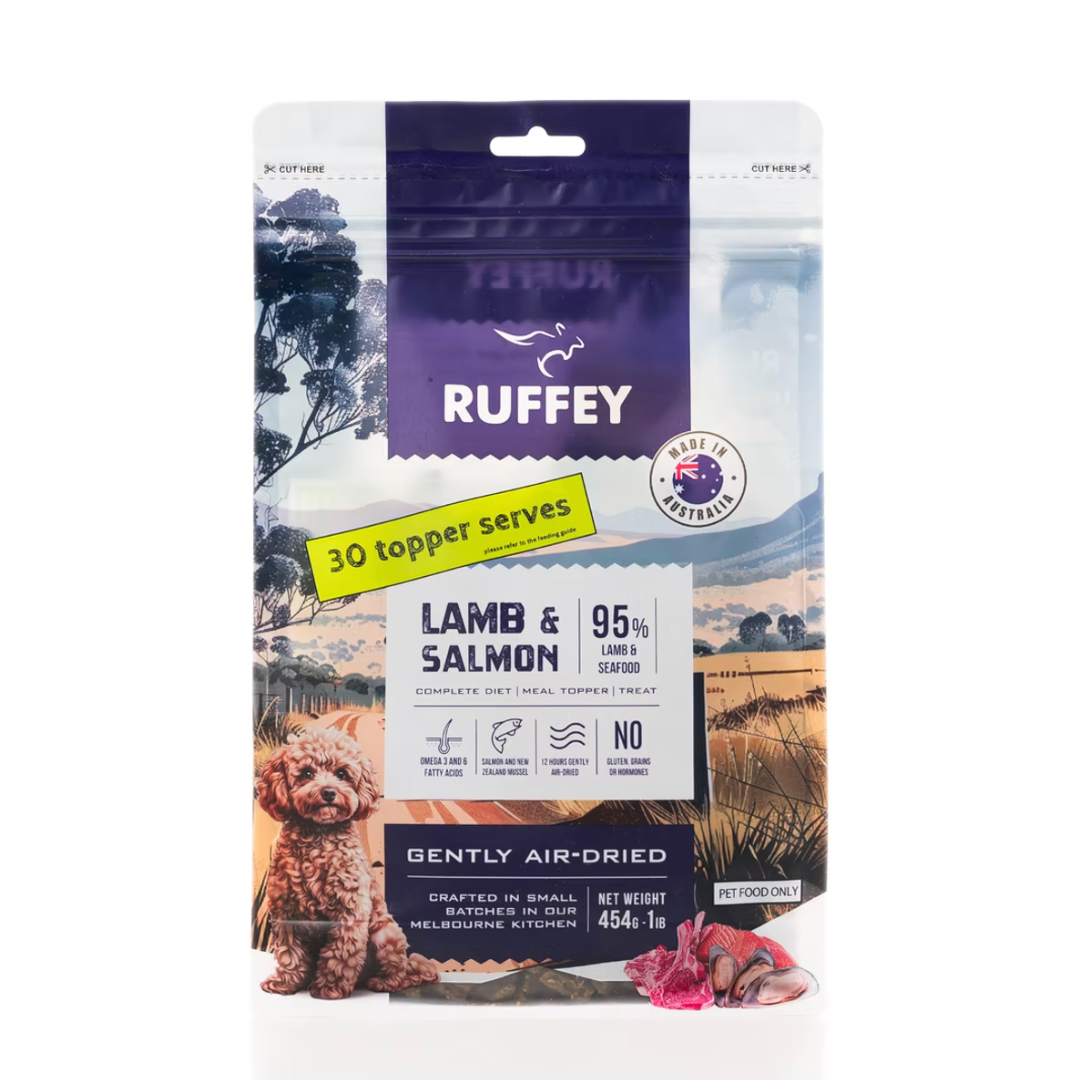 Ruffey air dried dog food provides dogs with wholesome nutrition to support their overall health and wellbeing. Packed with whole meats and vegetables, and cooked at lower temperatures than kibble, these meals deliver the nutrients dogs are designed to thrive on.