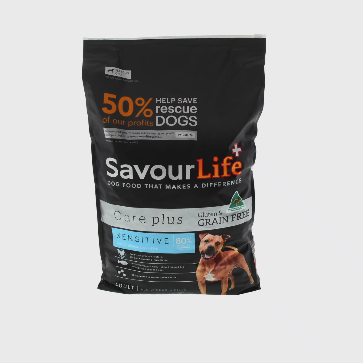 SavourLife Grain-Free Food Care Plus Sensitive Ocean Fish is a premium dog food meticulously crafted for adult dogs with sensitivities. This thoughtfully formulated recipe features ocean fish as the sole source of animal protein, reducing the risk of triggering food allergies and intolerances.