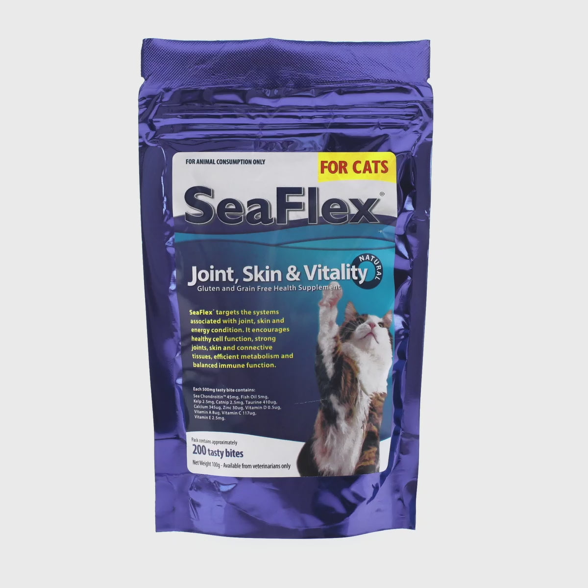- SeaFlex contains ingredients like glucosamine and chondroitin sulphate, which help support healthy cartilage and joint function in cats, especially as they age.