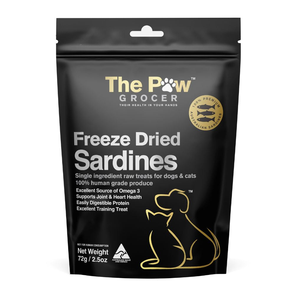 Wild-caught Australian Sardines are packed full of Omega-3 fatty acids to support healthy skin, a shiny coat, and joint health, along with muscle maintenance and overall health and wellbeing. These treats are hypoallergenic and biologically appropriate for both cats and dogs.