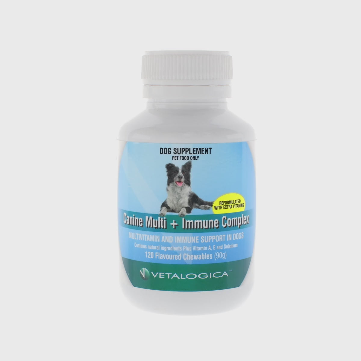 Vetalogica Canine Multi & Immune Complex is suitable for dogs of all ages and breeds, making it a convenient way to enhance your pet's nutritional intake and support their overall health.