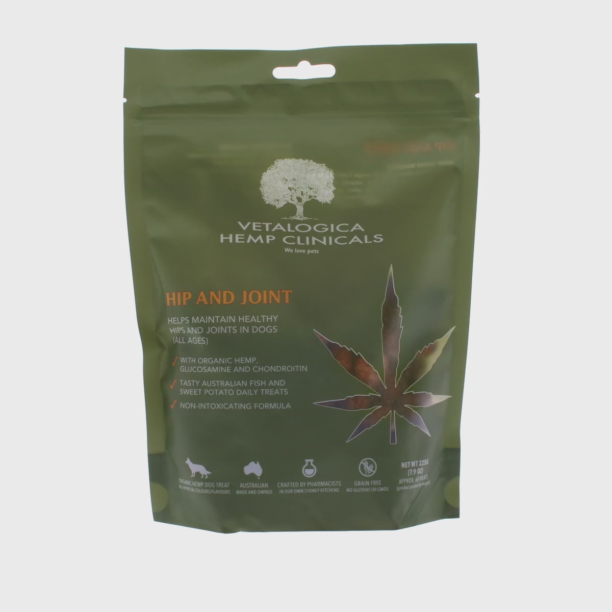 Hemp also contains antioxidants that protect joint tissues from damage.In addition to hemp, these treats are fortified with glucosamine and chondroitin, two essential building blocks of cartilage. These nutrients support the regeneration of cartilage and help maintain joint lubrication, promoting flexibility and ease of movement.But Vetalogica Hemp Clinicals Hip & Joint Treats aren't just healthy – they're also delicious! Made with real Australian fish and sweet potato, these treats are a tasty reward that your dog will look forward to. And because they're grain-free, gluten-free, and free from artificial colours and flavours, you can feel good about giving them to your furry friend every day.
