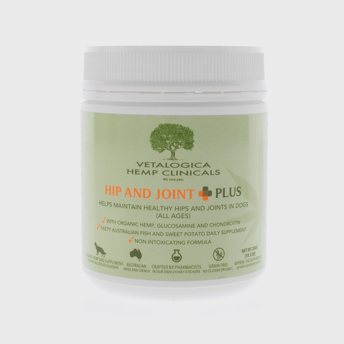 Vetalogica Hemp Clinicals Hip & Joint Plus Dog Supplements offer a natural, holistic approach to supporting your dog's joint health and mobility. Crafted by pharmacists in Vetalogica's Sydney kitchens, these supplements combine the power of organic hemp with essential nutrients to provide comprehensive joint care.