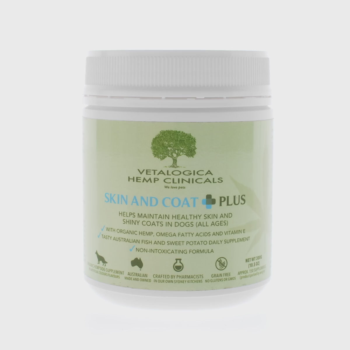 Vetalogica Hemp Clinicals Skin & Coat Plus Dog Supplements are a pharmacist-formulated daily supplement designed to promote healthy skin and a lustrous coat in dogs of all ages. Crafted with organic Australian hemp, these supplements provide a rich source of omega-3 and omega-6 fatty acids, essential for maintaining skin health and promoting a shiny, vibrant coat.