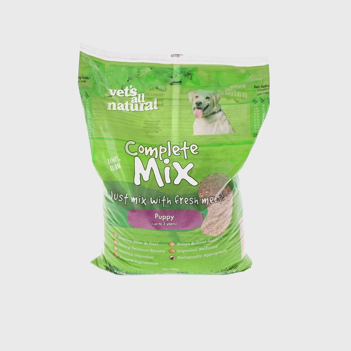 Vet's All Natural Complete Mix is designed to be mixed with fresh meat, providing a complete and balanced diet that your puppy will thrive on. This mix is an economical and convenient way to ensure your puppy receives a wholesome and nutritious meal every day.