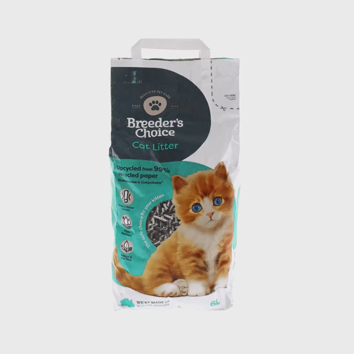 Breeder's Choice Kitten Litter is an eco-friendly, Australian-made litter designed to provide your kitten with a clean and comfortable environment. Made from 99% recycled paper, it’s highly absorbent, controlling odours naturally without any added chemicals or fragrances.