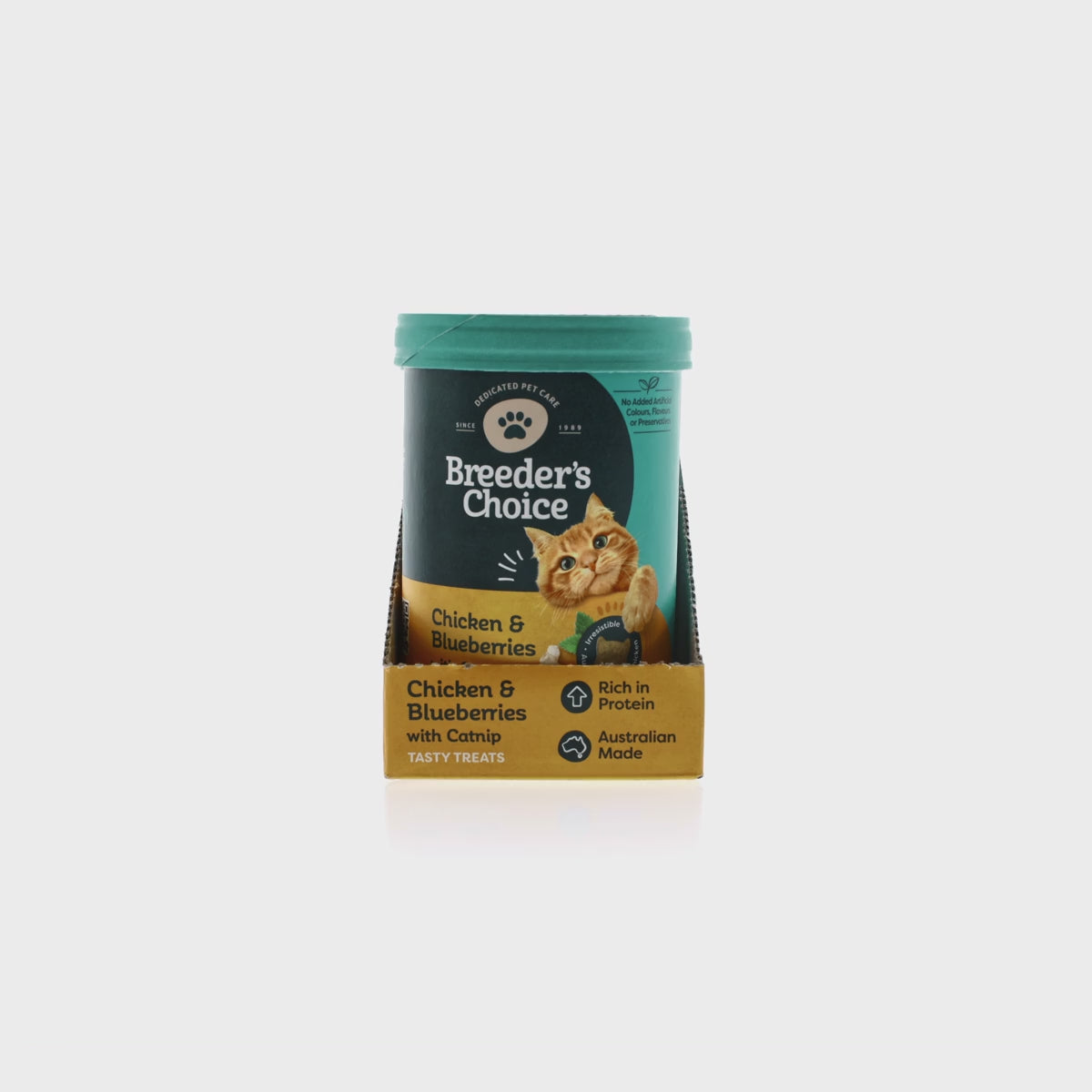 Breeder's Choice Tasty Treats - Chicken, BB & Catnip are a delicious and nutritious snack your cat will love. Made with premium Australian chicken, these treats are rich in protein and flavour.