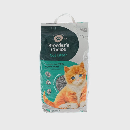 Breeder's Choice Kitten Litter is an eco-friendly, Australian-made litter designed to provide your kitten with a clean and comfortable environment. Made from 99% recycled paper, it’s highly absorbent, controlling odours naturally without any added chemicals or fragrances.