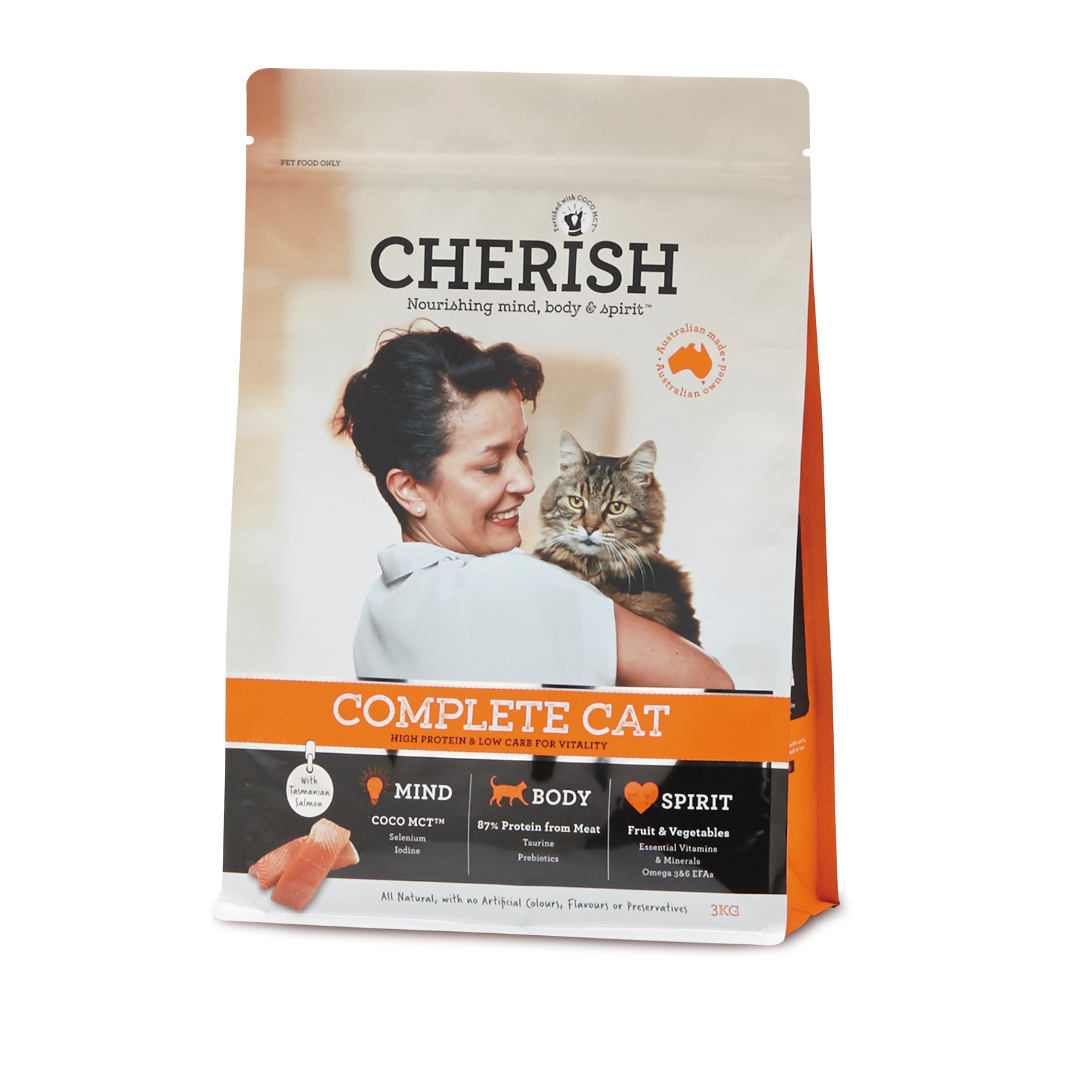 In addition, Cherish have an optimised and balanced blend of specific omega 3 & 6 essential fatty acids for a shiny coat and healthy skin. To assist with the management of hairballs, they've included fibre and paraffin to prevent hair clumping and keep everything passing through their system smoothly.
