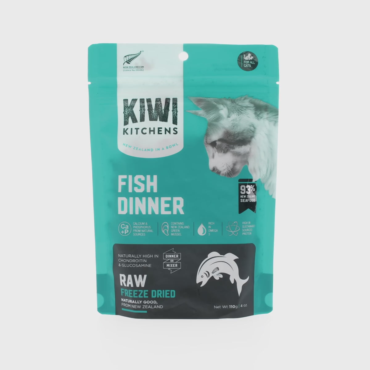Unleash your cat's inner sailor with Kiwi Kitchens Freeze-Dried Fish Cat Dinner! Packed with 93% real New Zealand seafood, this grain-free recipe is a protein-packed adventure for your feline friend's taste buds. The delectable mix of ocean flavours includes salmon, hoki, and ling whitefish, offering a variety that satisfies even the most discerning kitty.