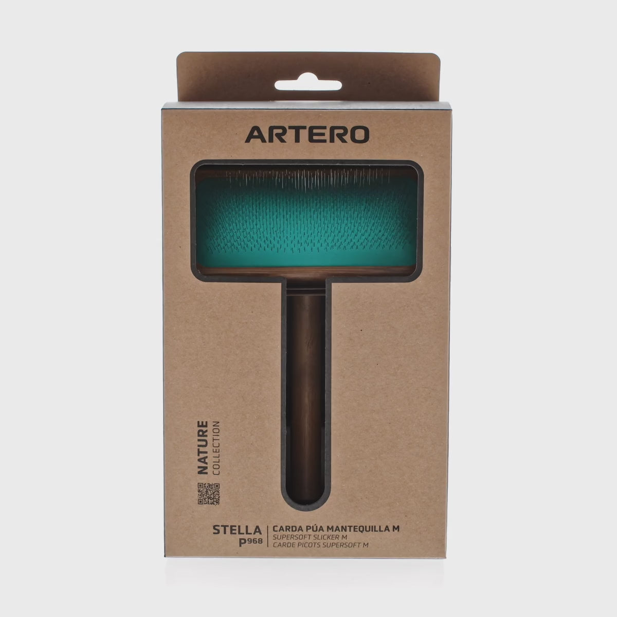 The Artero NC Supersoft Slicker Brush is a grooming essential designed to gently detangle and fluff your pet's coat while promoting a healthy shine.