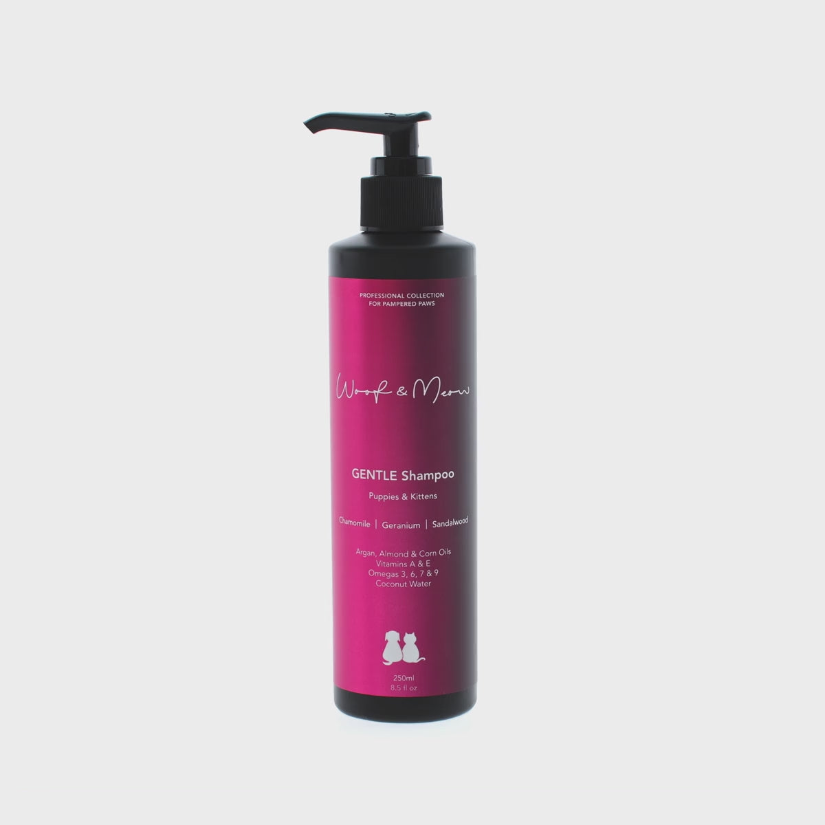 Pamper your pet's delicate skin with Woof & Meow Gentle Shampoo, a 100% natural formula specially designed for dogs and cats with sensitive skin.