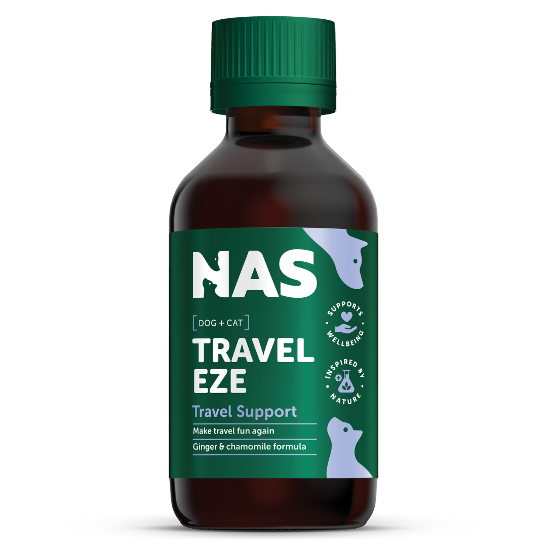 Say goodbye to motion sickness woes for your furry friends with TravelEze! Our non-drowsy support formula, crafted with premium herbal ingredients including ginger, withania, and chamomile, is designed to make travel a breeze for pets and their owners