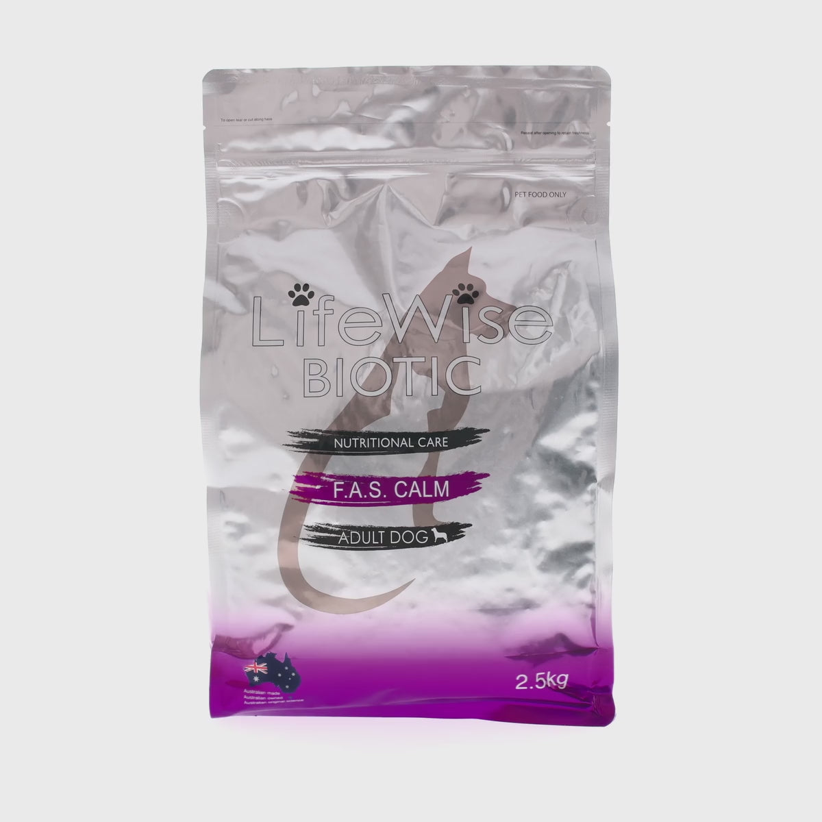 LifeWise BIOTIC F.A.S. Calm is designed to provide a well-balanced supply of essential nutrients that support both physical health and mental stability. Additionally, it promotes microbial diversity in a dog’s gut, fostering a happier, healthier, and more sociable companion.