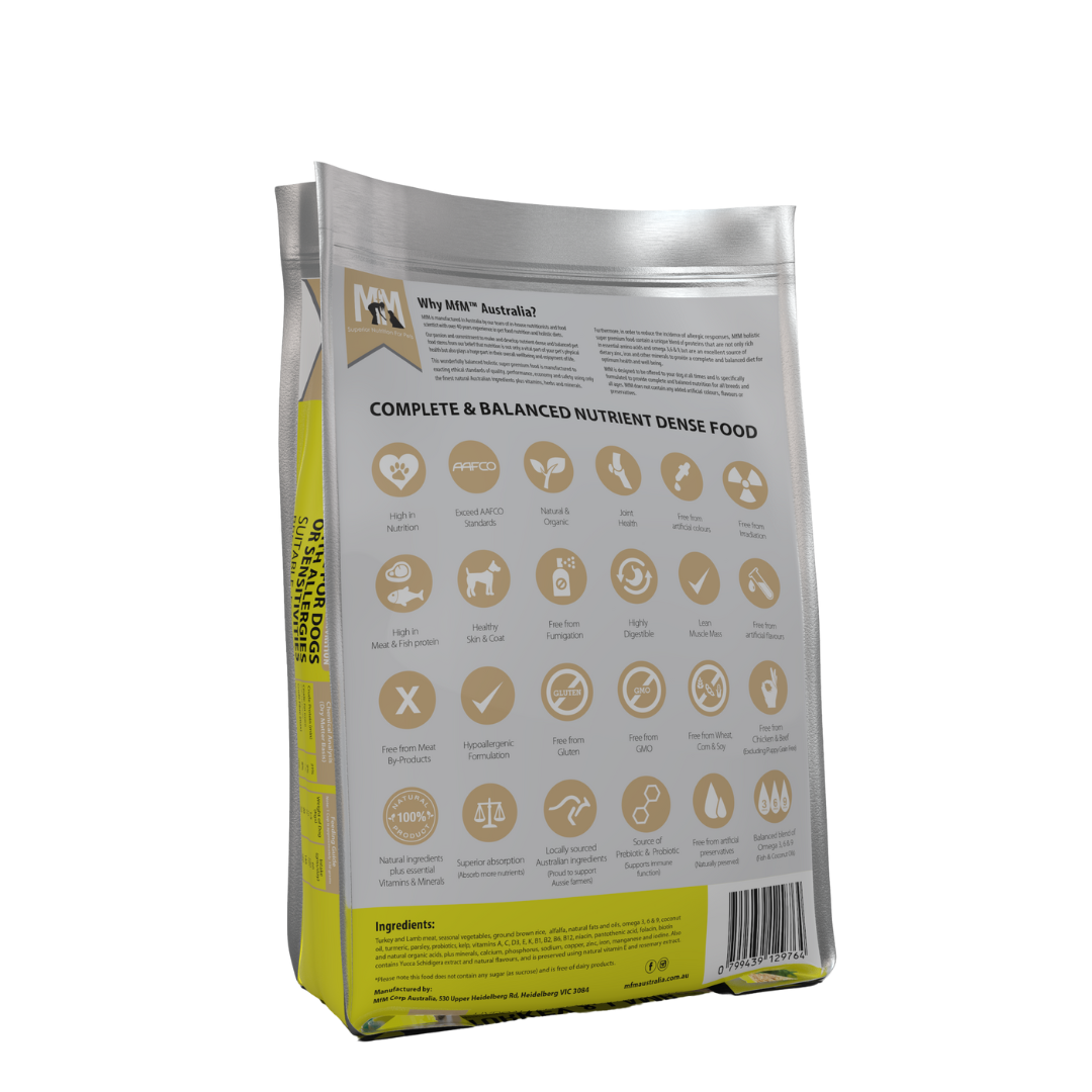 MFM Dog Lite Turkey & Lamb Gluten Free (Yellow) is a specially formulated dry food designed for dogs that need to maintain a healthy weight. Made with lean turkey and lamb, this recipe provides high-quality protein while being lower in fat to support weight management.