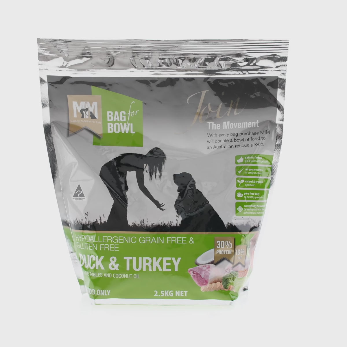 MFM Duck & Turkey Grain & Gluten-Free Green is a carefully crafted diet designed to cater to dogs with sensitivities and allergies.