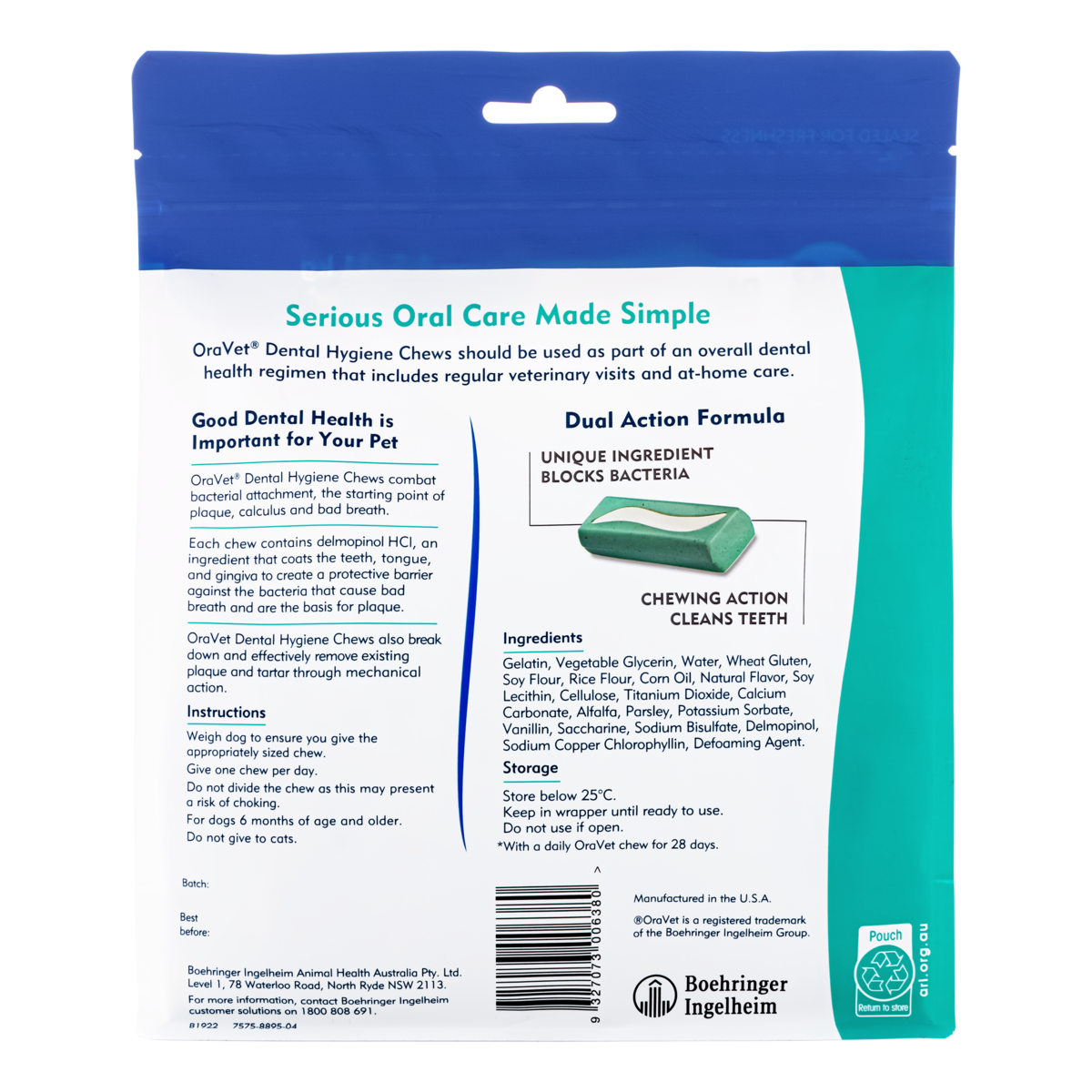 Oravet Dental Chews are veterinarian recommended, available in different sizes for various dog breeds, easy to add to your dog’s daily routine, and made with safe, high-quality ingredients, without any artificial flavors or colors.