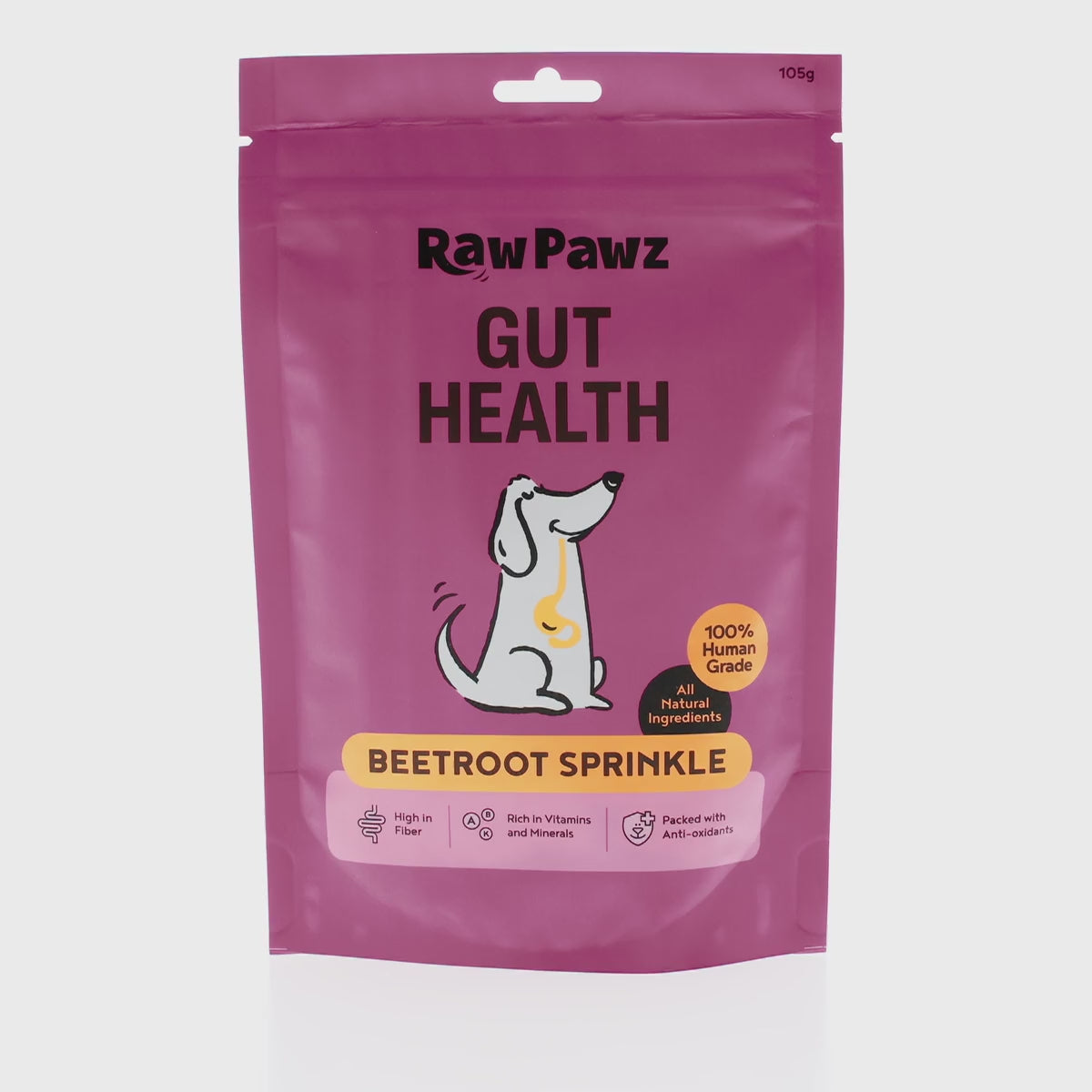 Raw Pawz Gut Health Beetroot Sprinkle is a premium supplement designed to enhance your pet’s digestive wellness and overall health.