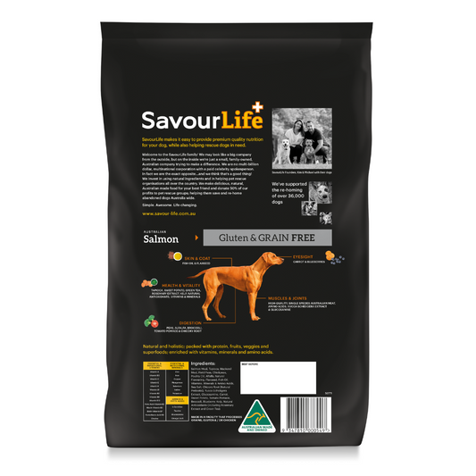 SavourLife ® products are made in Australia. SavourLife ® brand products are crafted to support your dog’s health, training, and wellbeing, while giving back to rescue dogs in need.