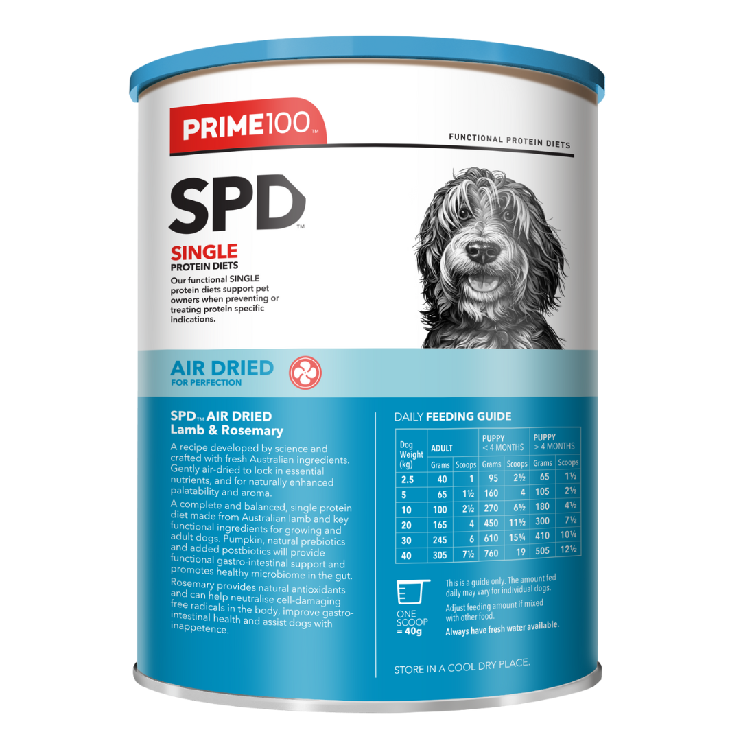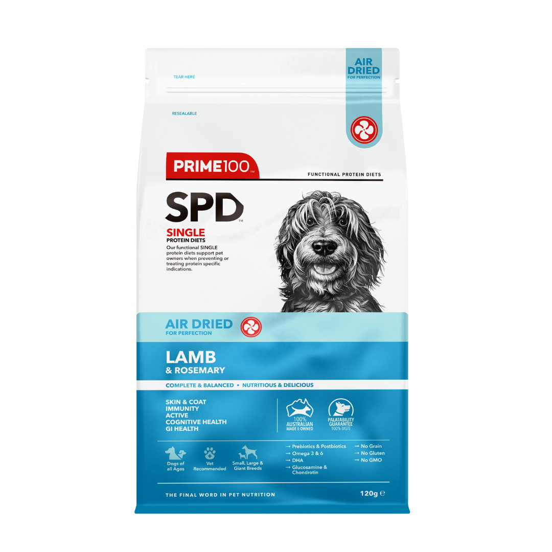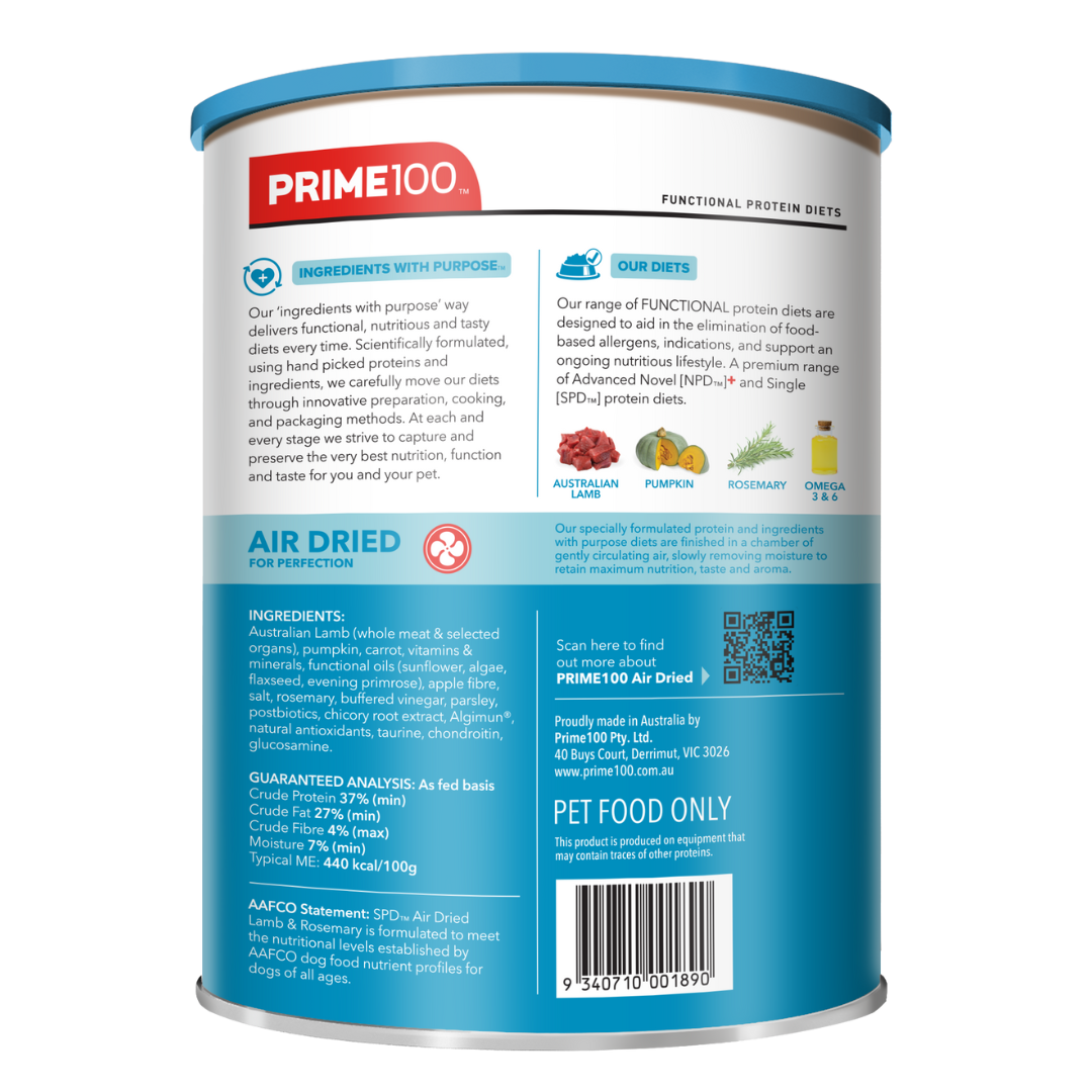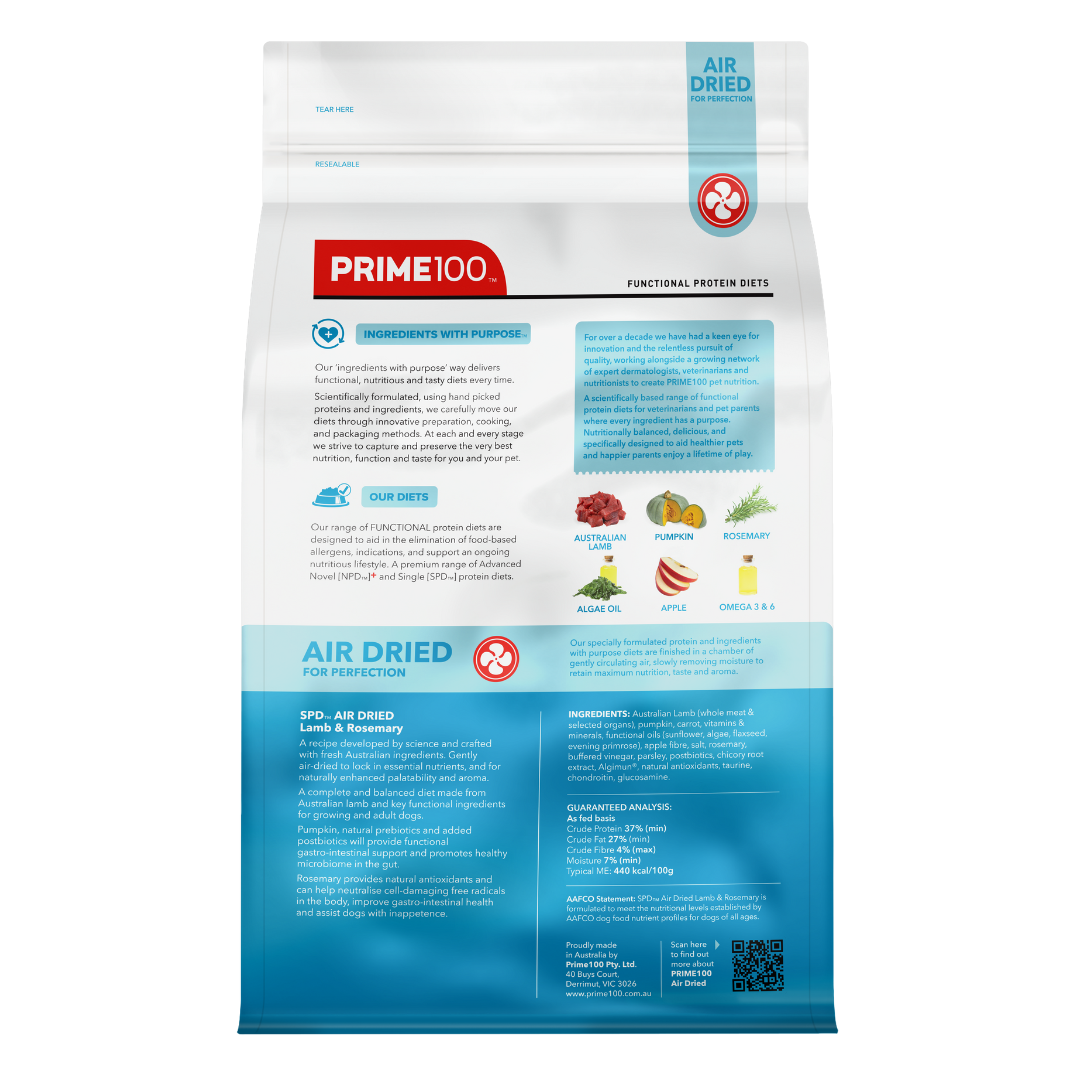 Nourish your dog with the savoury flavours and wholesome nutrition of Prime100 SPD Air Dried Lamb & Rosemary! This scientifically developed recipe features Australian-sourced lamb as the primary protein source, providing essential amino acids for strong muscles and a healthy immune system.