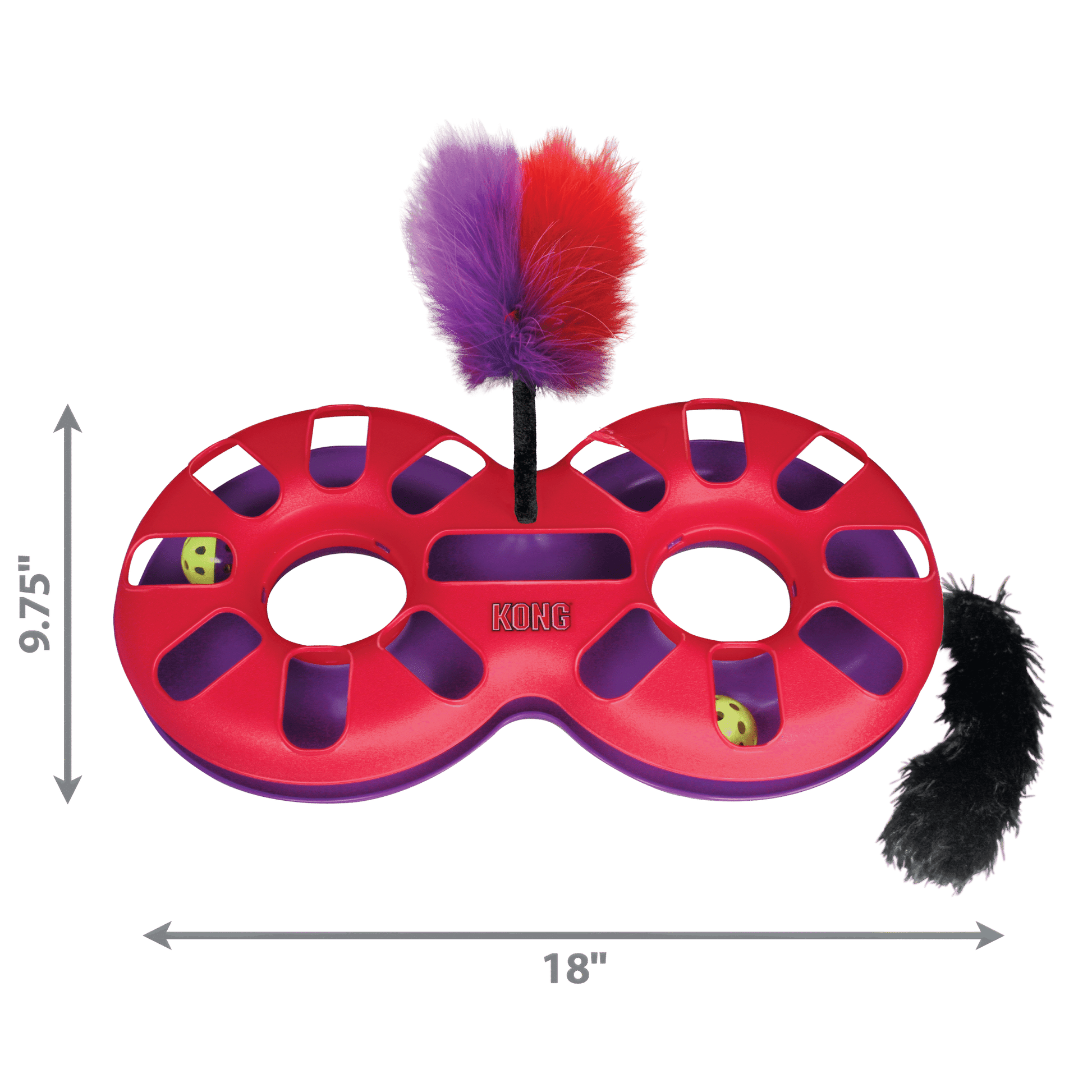 The KONG Cat Eight Track turns casual play into full-on enrichment. Designed for natural feline hunting instincts, the two balls zip around the figure-eight track whenever your cat bats at them, encouraging dynamic movement and paw-work. The fluffy Kickeroo tail and feather plume add extra visual and tactile stimulation, prompting your cat to bat, pounce and kick—just like they would in a real hunt. Add catnip for extra excitement. Ideal for indoor cats or cats who need more stimulation, this toy supports active play, sharp reflexes, and mental engagement—without you needing to intervene every second. Plus, its durable build ensures long-lasting fun.