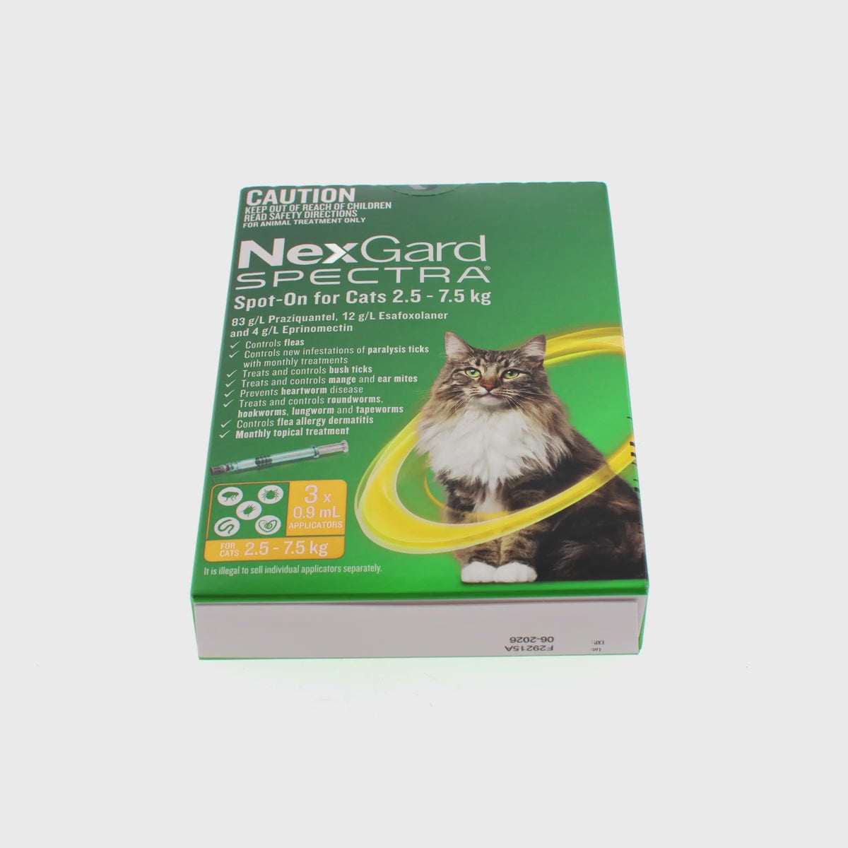 NexGard Spectra Spot-On for Cats is specifically designed for feline companions weighing 2.5-7.5kg, offering comprehensive protection against parasites.