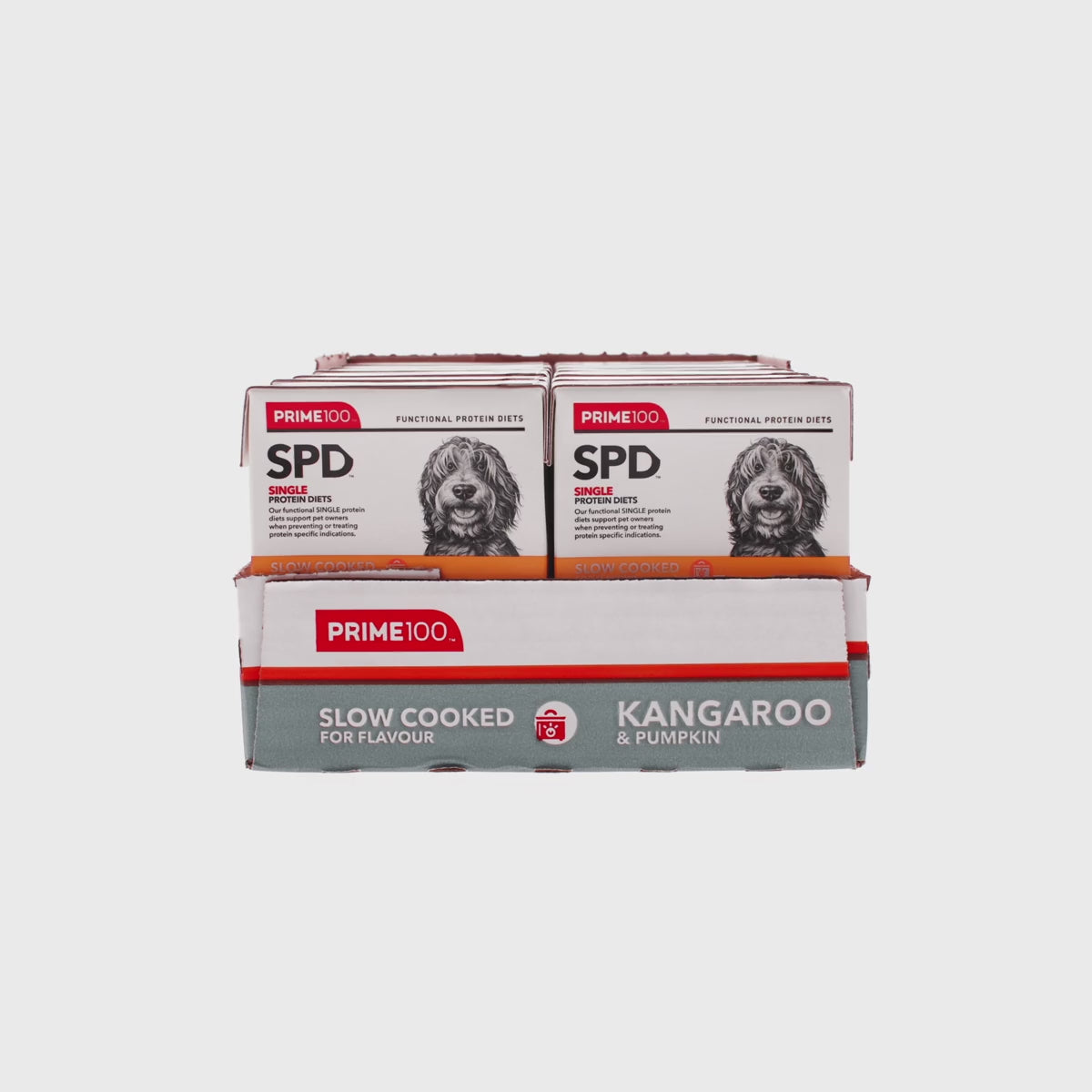 Nourish your dog with the unique and wholesome nutrition of Prime100 SPD Slow Cooked Kangaroo & Pumpkin. This scientifically-developed recipe features Australian-sourced kangaroo, slow-cooked to tender perfection to enhance its palatability and nutrient bioavailability. Kangaroo, a lean and novel protein source, is ideal for dogs with sensitivities and those needing weight management.